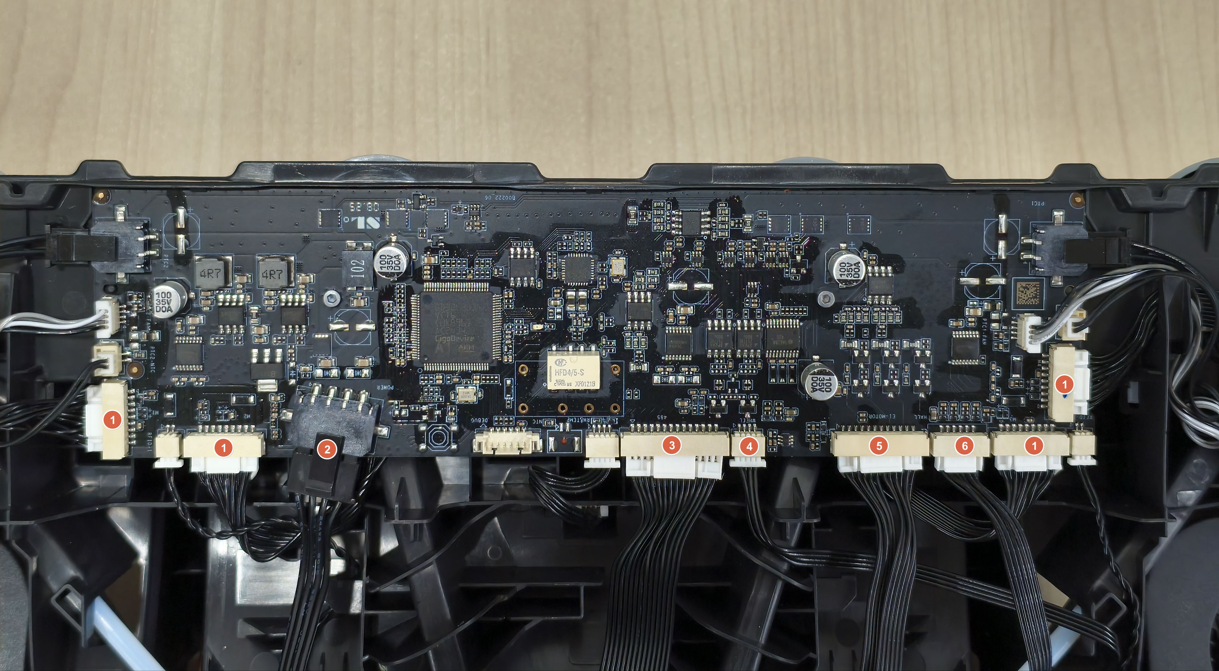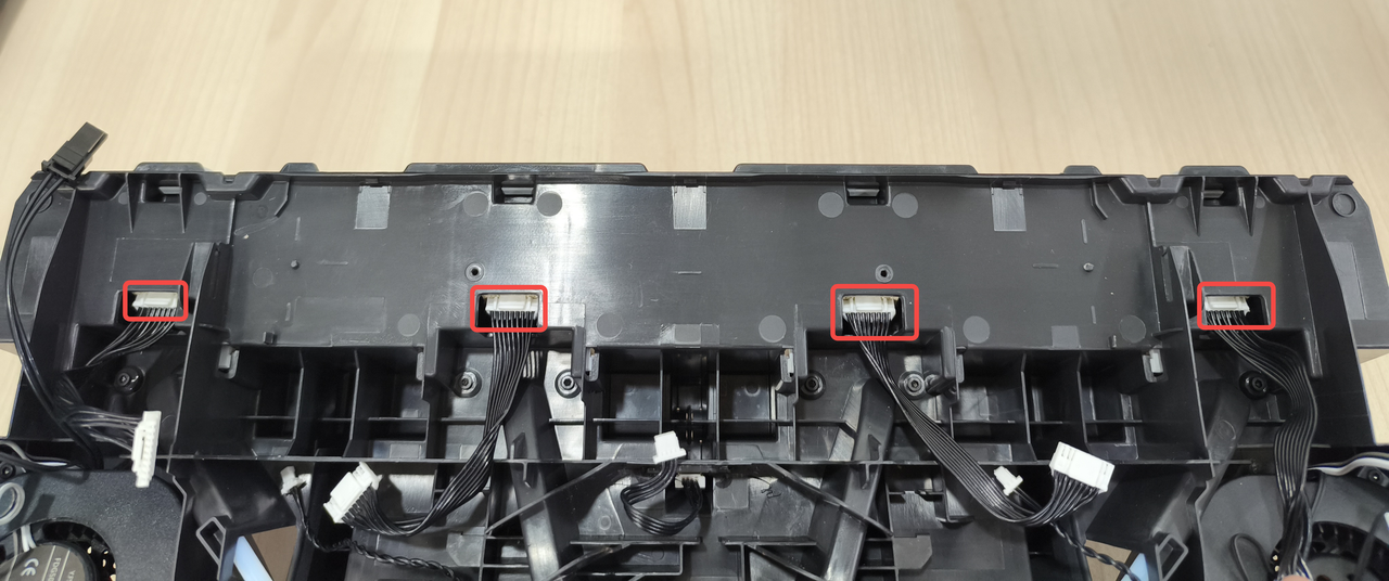 After removing the mainboard, you will see the other connectors of the four feeder motor cables.