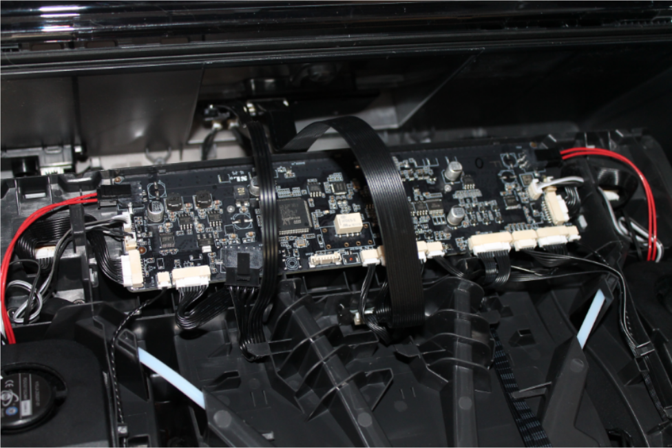 The AMS mainboard is the core power board of AMS. It provides a series of connectors through which various functional components are connected. If you disconnected the mainboard in the previous steps, reconnect it to the power board at this stage. Carefully flip the internal AMS assembly upside down to expose the mainboard. The purpose of this step is to verify that the mainboard is receiving power correctly.
