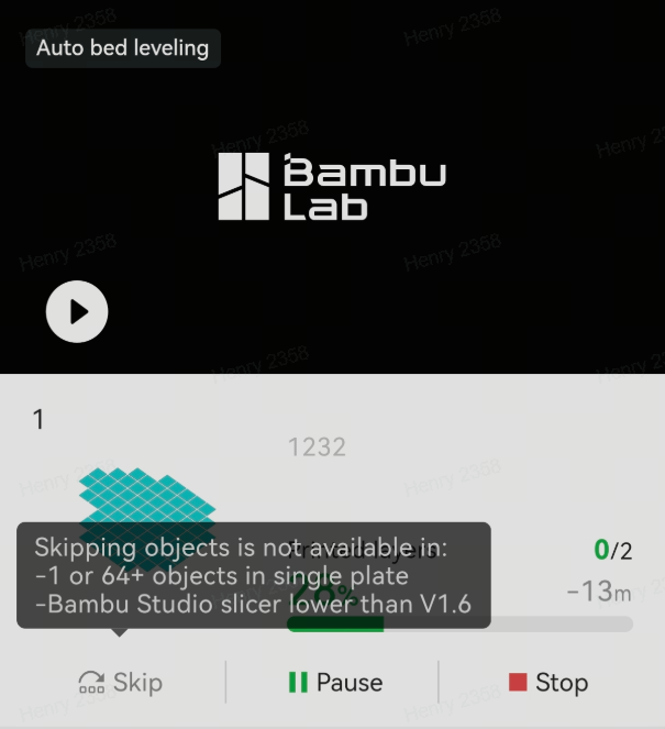 For X1 and H2 series printers, during the printing process, you can achieve object skipping through screen operation.