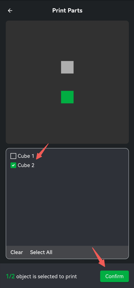 You can also skip some objects when you print again in the APP's print history list. The steps are as follows: