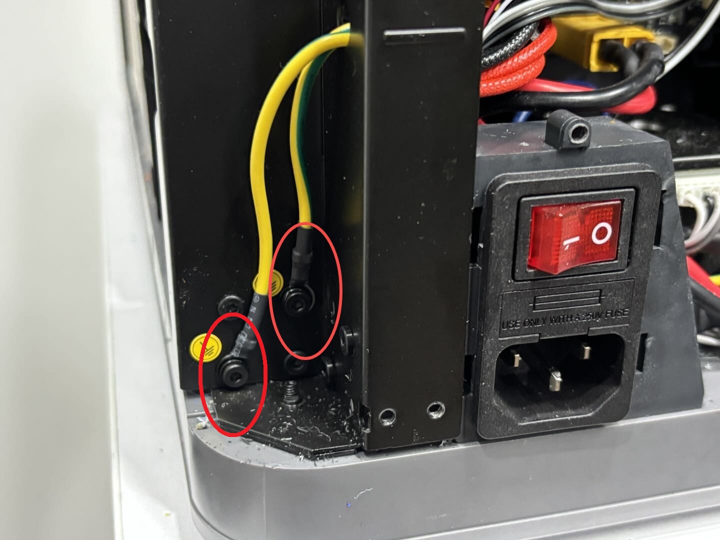 After removing the panels, check whether the grounding screws are loose or not making proper contact. If so, please tighten the screws and reinstall the panels, and observe the resistance value again. The screw positions are shown in the images below: