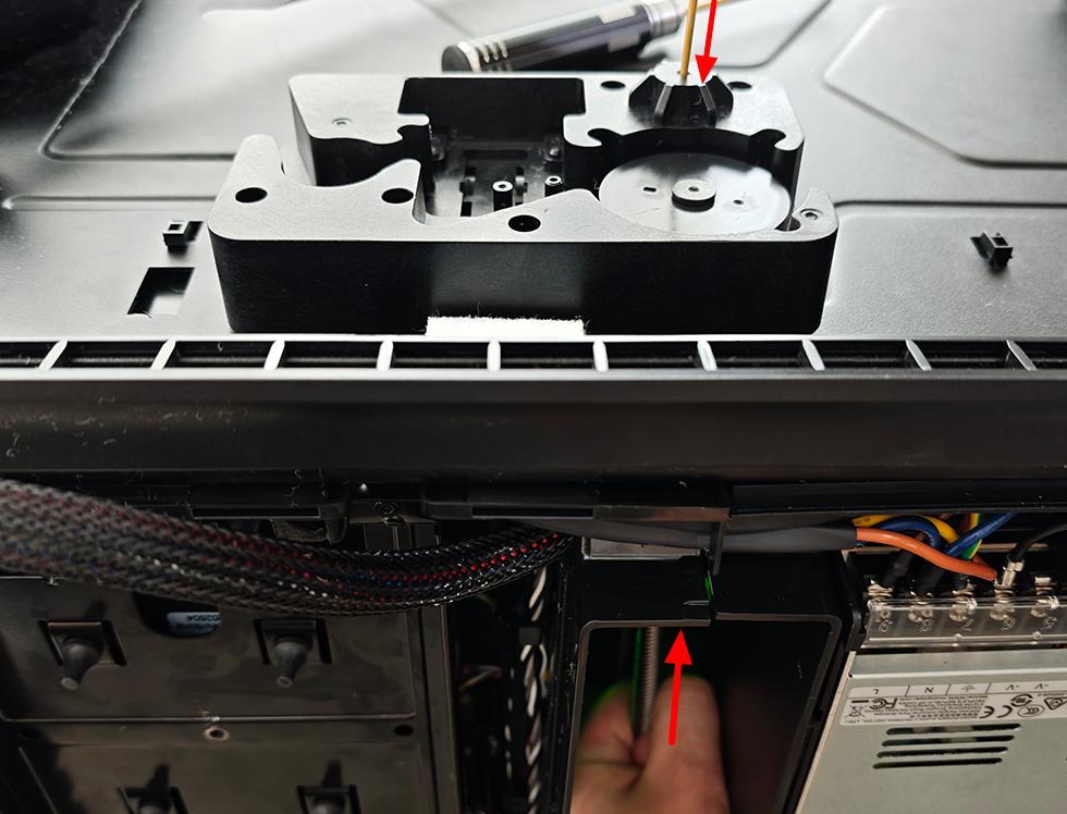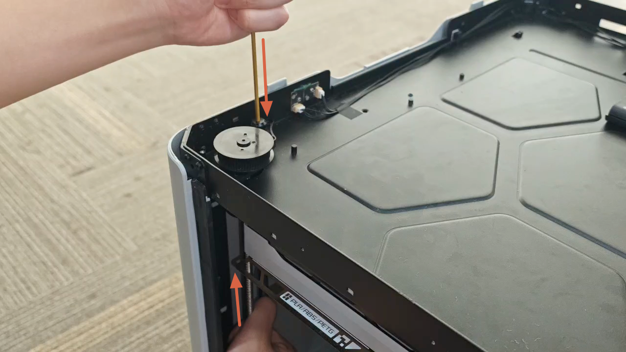 Using an H2.0 straight hex driver, remove the bottom mounting screws for the specific Z-axis lead screw you’re replacing.