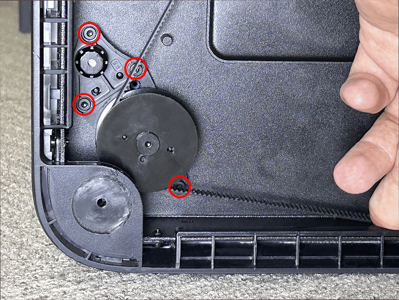 Note: In addition to screws, the printer feet are stuck to the ring with adhesive. After removing the screws, peel the footpads off.