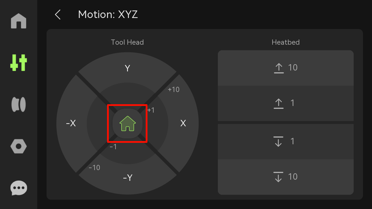Move the heatbed to the lowest position to create working clearance and avoid interferences.