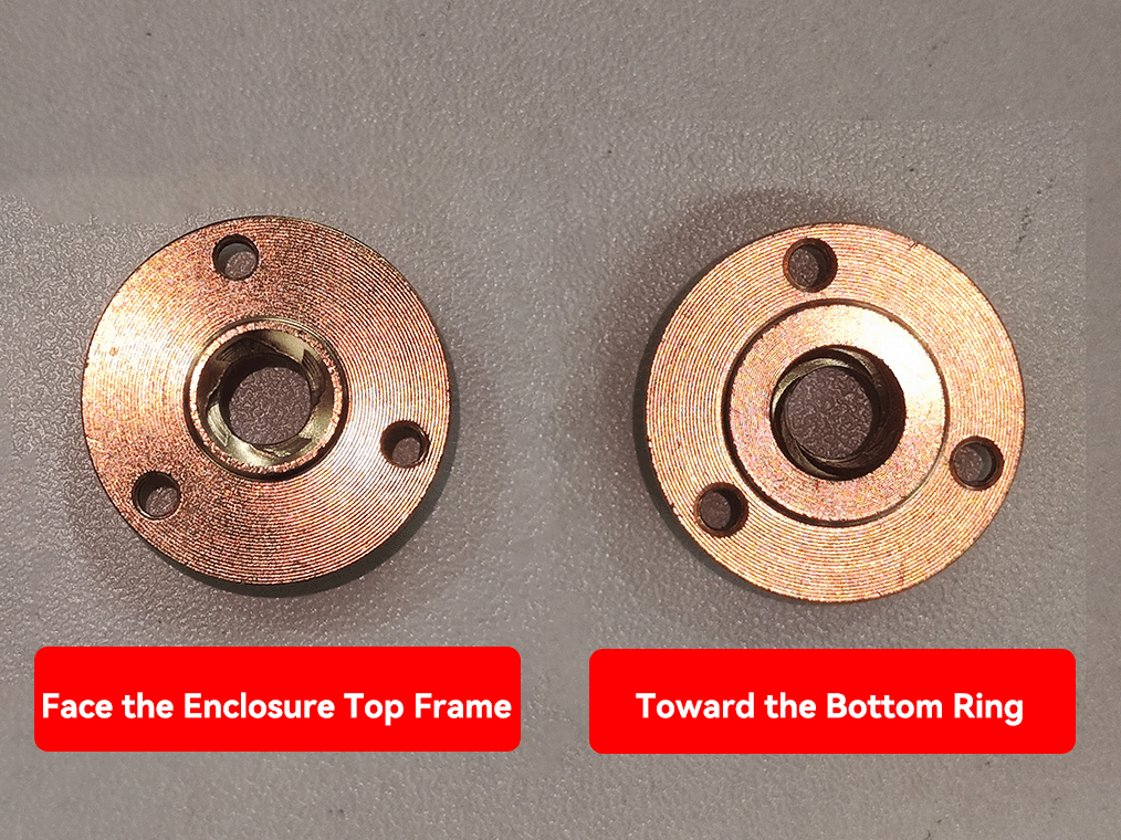 To avoid fixing the nut to the lead screw first—making later alignment between the bed and lead screw difficult—we recommend pre-installing the nut into the heatbed locating hole. This step is for positioning only, not final tightening.