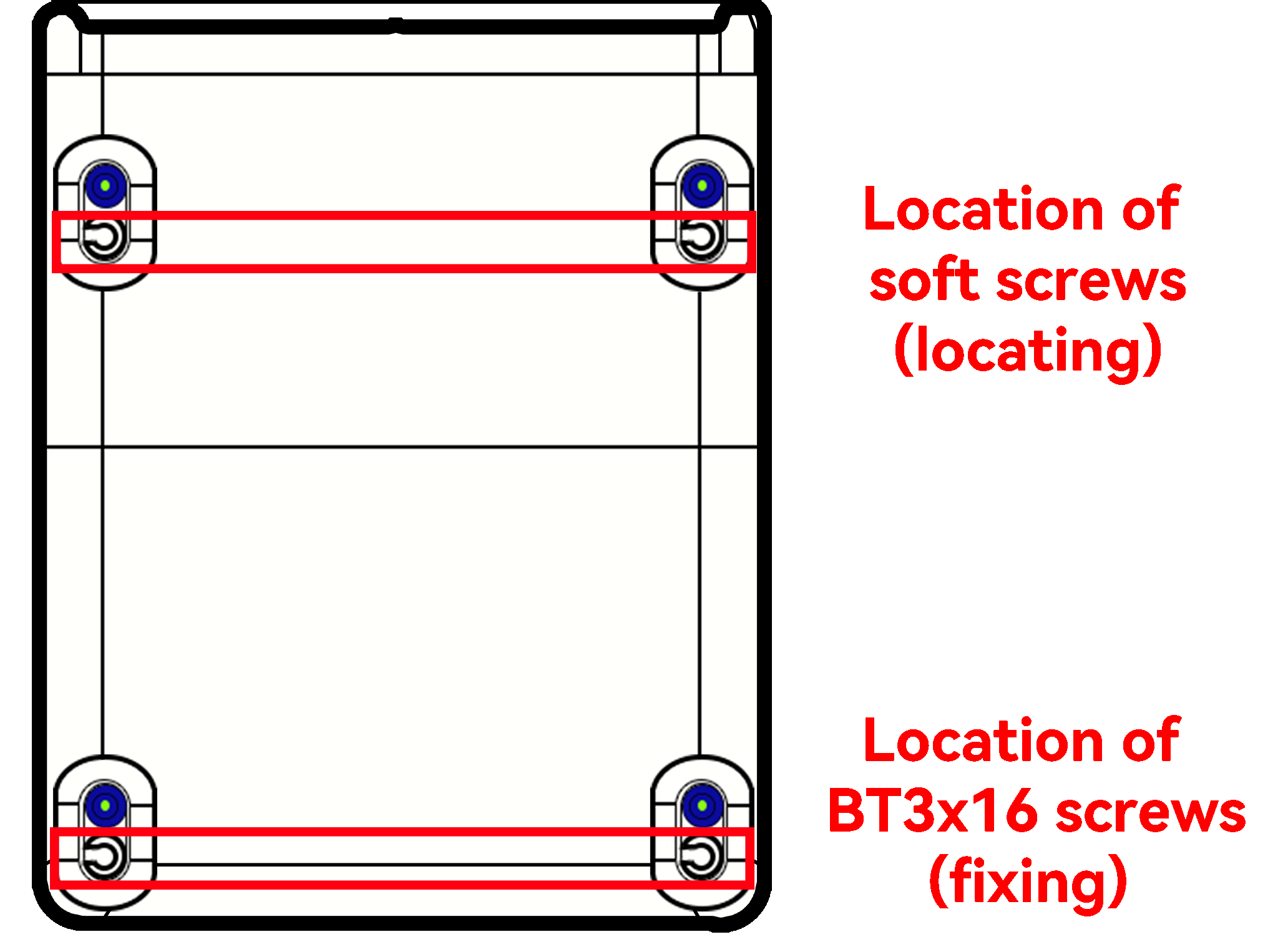 Use an H2.0 hex key to tighten 12 screws (marked with a green rectangle, BT3×8).