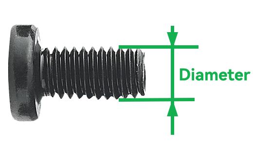 Diameter: the major (outside) diameter of the external thread. Thread length: the distance from thebearing surfaceunder the head to the end of the shank; the head height is not included.