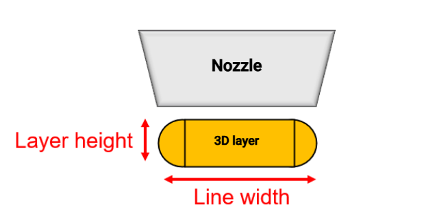 Layer height refers to the height of each layer in the 3D printing model, while the layer width means the width of a single melted filament extruded by the nozzle during printing. Find more details on layer height and layer width on the Bambu Wiki.