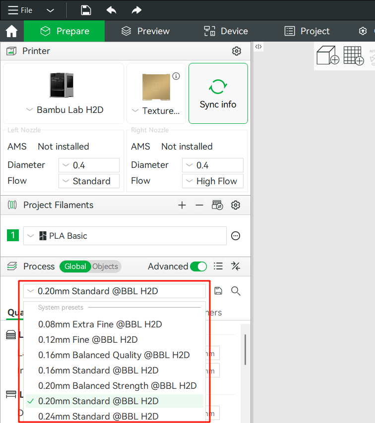 Changing layer height also has a big impact on volumetric speed. When selecting a print process in Bambu Studio, observe that the layer height changes in the different print processes: