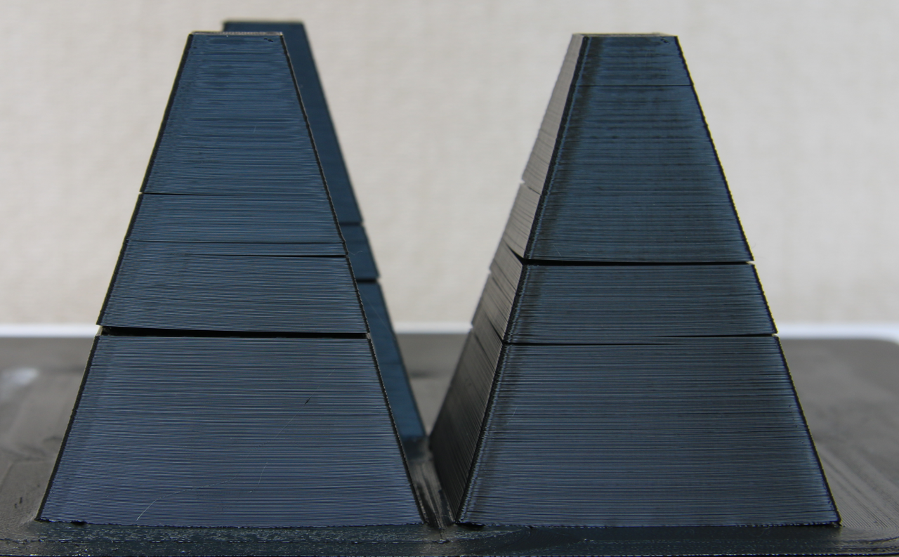 By reducing the layer height, we managed to decrease the volumetric speed. In the table above it is clear that reducing the layer height from 0.3mm to 0.16mm at 250mm/s reduced the volumetric speed from 33.8 mm³/s to 18 mm³/s. Aside from lowering volumetric load, smaller layer heights also improve the resolution and surface quality of a model. Thinner layers capture finer details, reduce the appearance of visible layer lines, and produce smoother curves and slopes. The trade-off, of course, is that print time increases significantly, since more layers are required to build the same model height.
