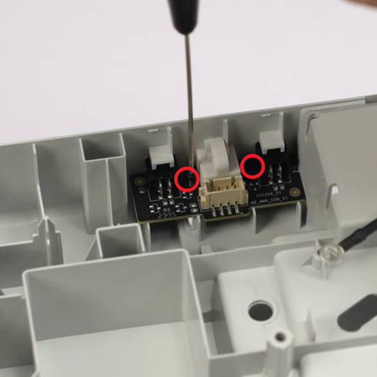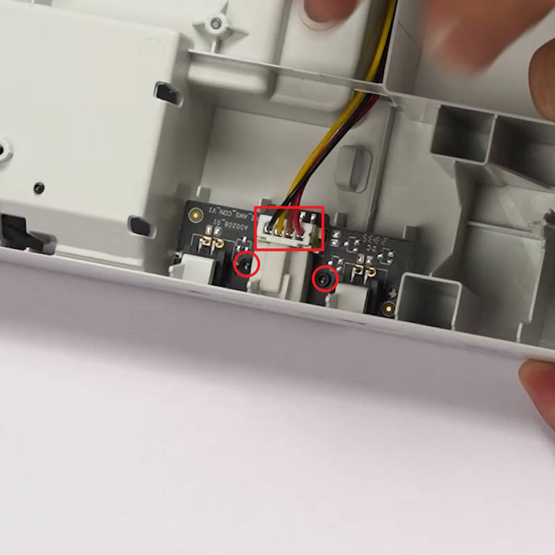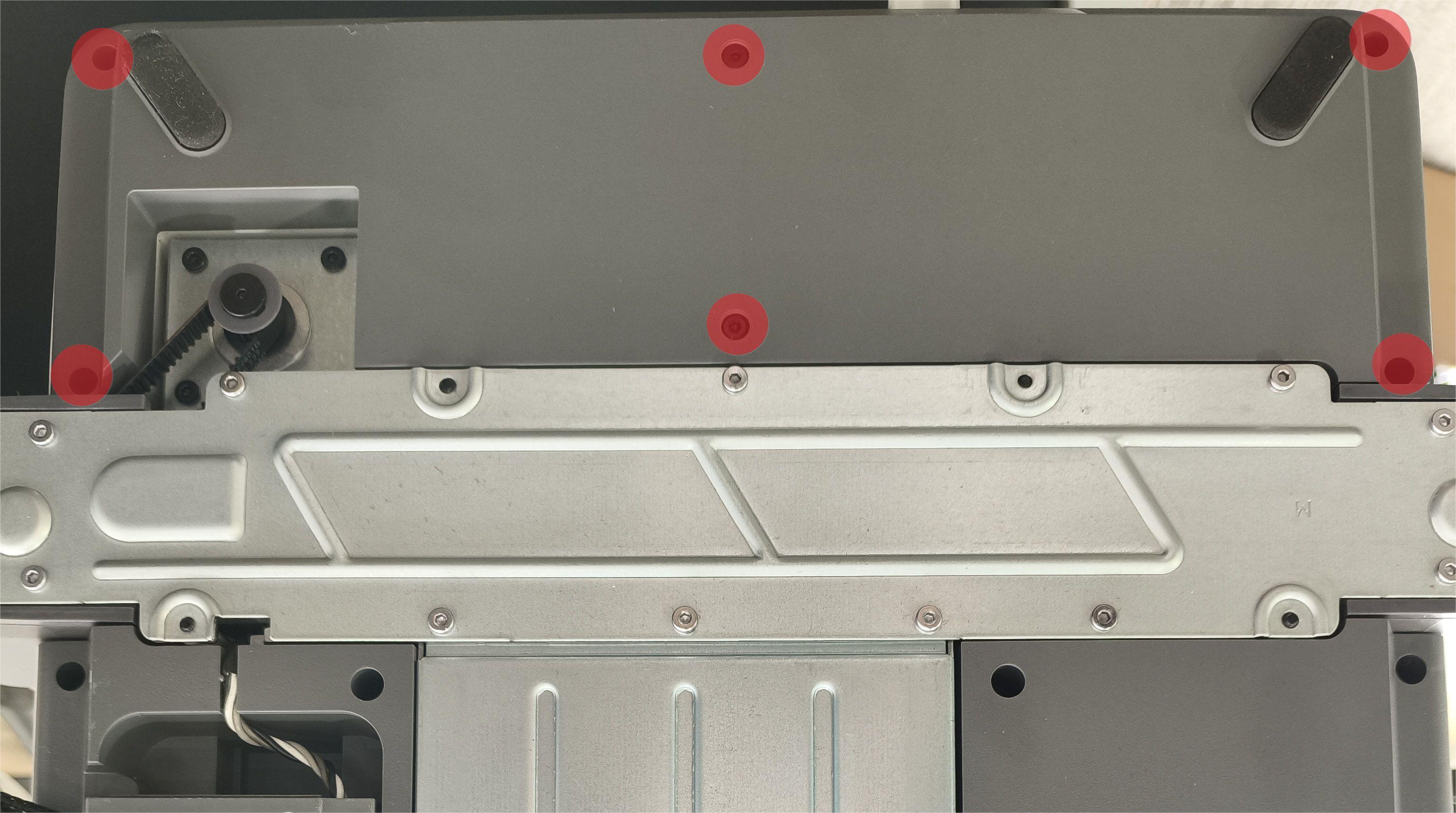 用 H2.0 内六角扳手拧下 6 颗红色标记螺丝,移除后底盖。